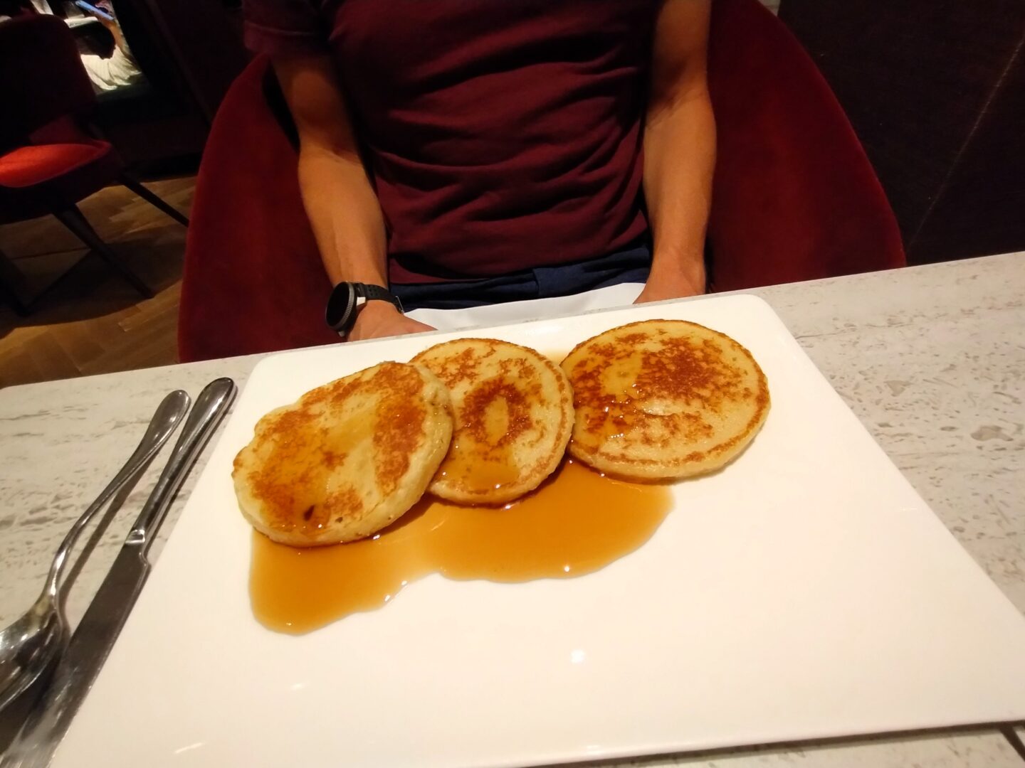 We enjoyed the coffee, both ordering a latte. And whilst I enjoyed the offerings from the buffet, Mr B ordered the pancakes and said they were delicious.