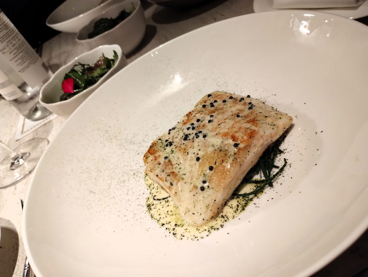 Pescato del giorno (catch of the day), which on our visit was Cod, was accompanied by sautéed sea asparagus, citrus butter sauce and caviar. The sauce alone was a taste sensation, the fish cooked perfectly. It was simply stunning.
