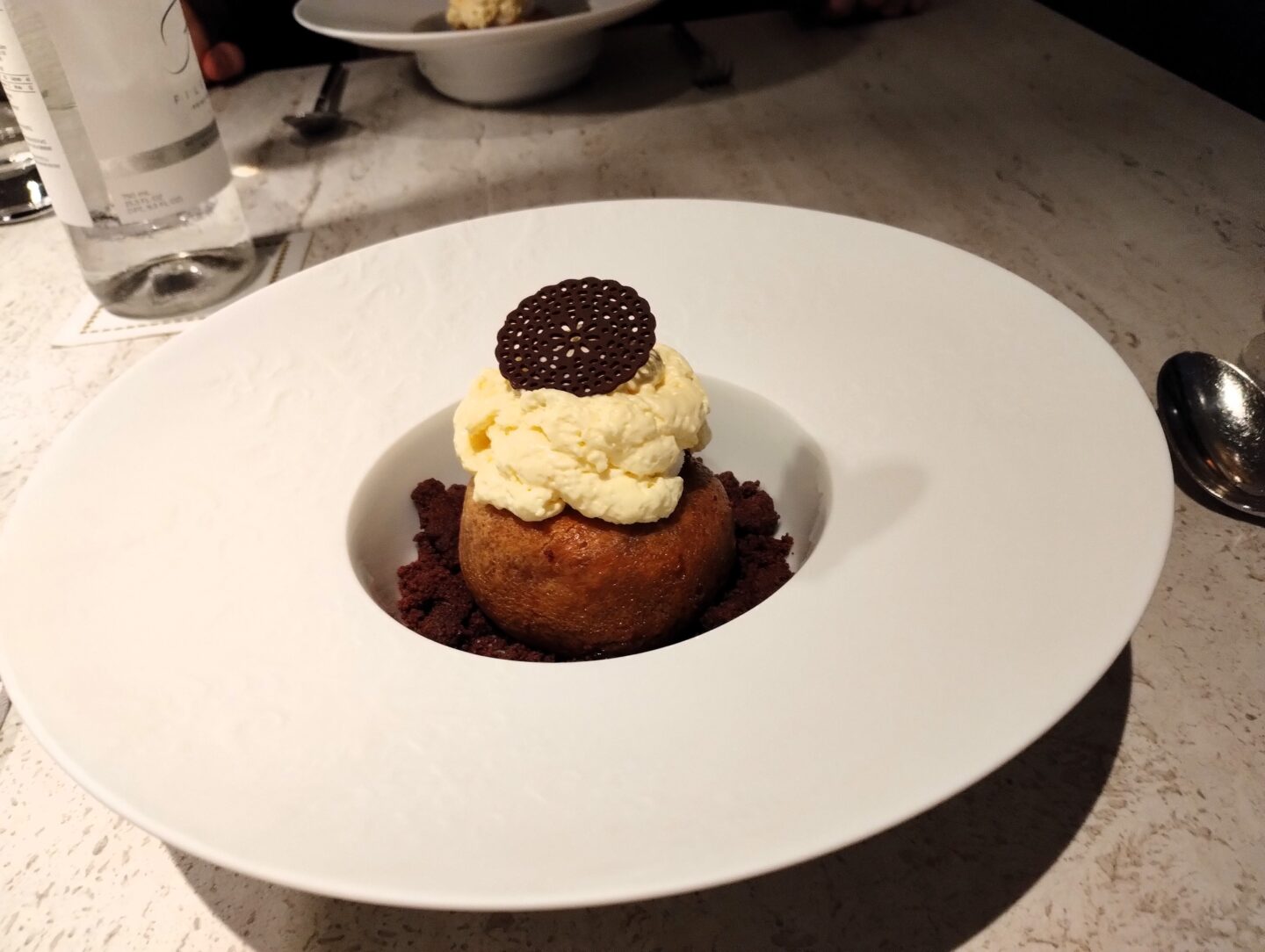 Our second course, I enjoyed the best homemade Gnocchi I have ever eaten. It was served with clams, mollusks and sea asparagus. The Gnocchi held the strong shellfish flavours very well.