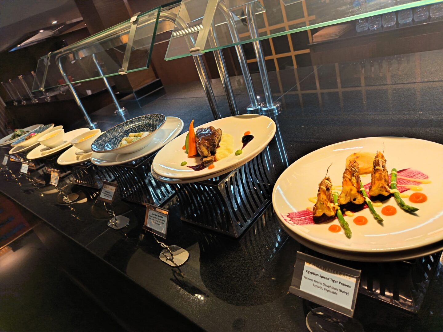 Dinner was à la carte and each evening there was a ‘display’ at the end of the dining room showing each dish. I always eyed this up to see what took my fancy, often before I looked at the menu.