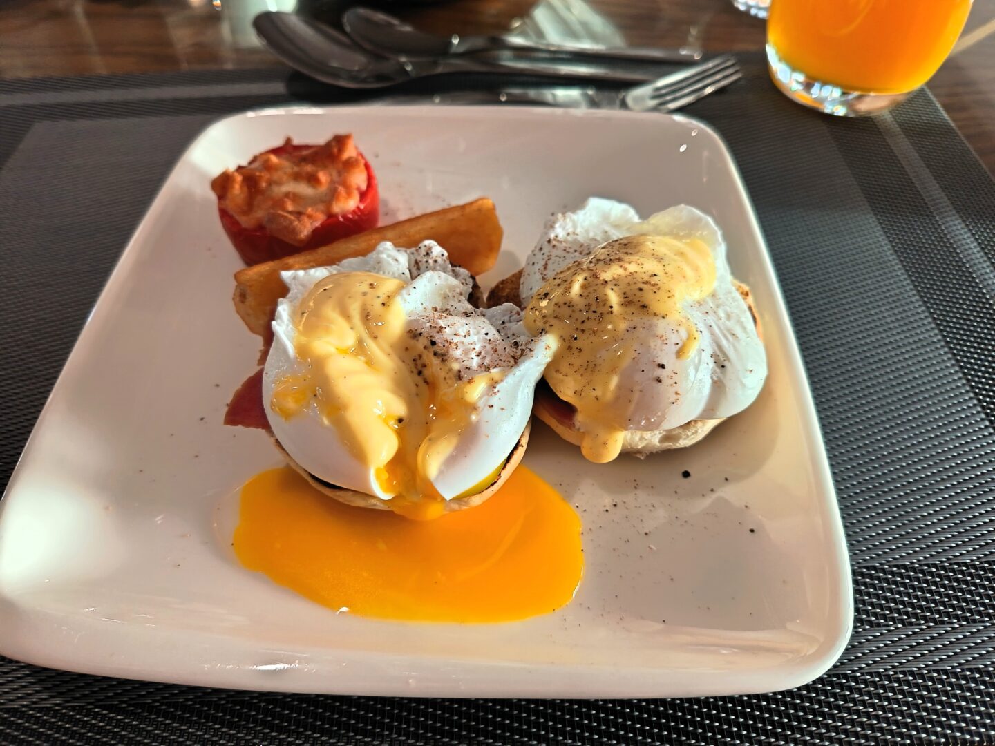 The breakfasts Mr B and I enjoyed were the eggs benedict, with lovely poached eggs . . .