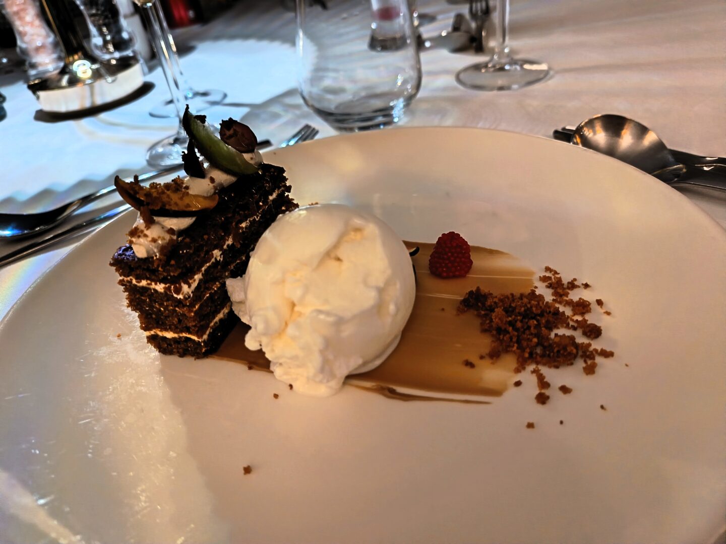 Onto the final course, I could never say no to a dessert. There was one choice of dessert which changed each evening along with the always available options of a fruit plate, cheese and crackers or ice cream.