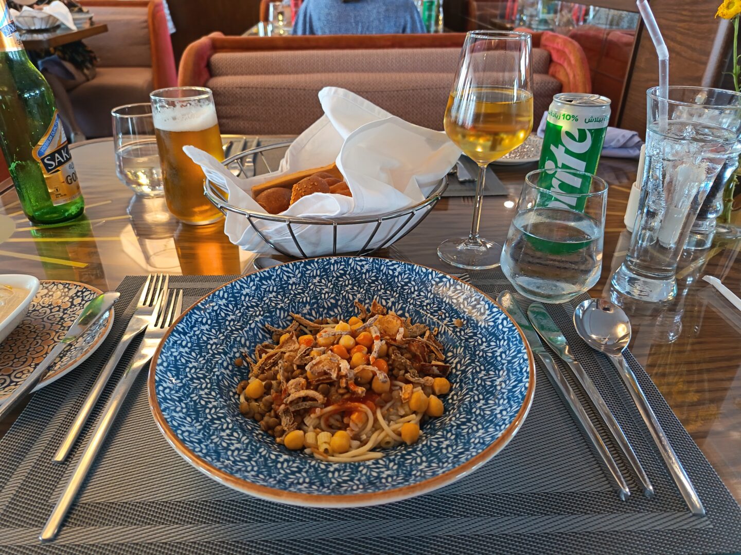 Next to the carving station was a live cooking station which again offered up a different dish each day. It had a few different pasta dishes, but my favourite was the traditional Egyptian koshary. It’s a dish which consists of three types of pasta, lentils, chickpeas, a garlic tomato sauce, garlic vinegar and crispy fried onions.